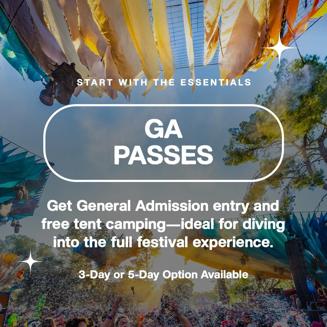 General Admission Passes grant you access to the festival and INCLUDE FREE CAMPING. This is your standard festival pass and most likely what you and your friends will be getting.